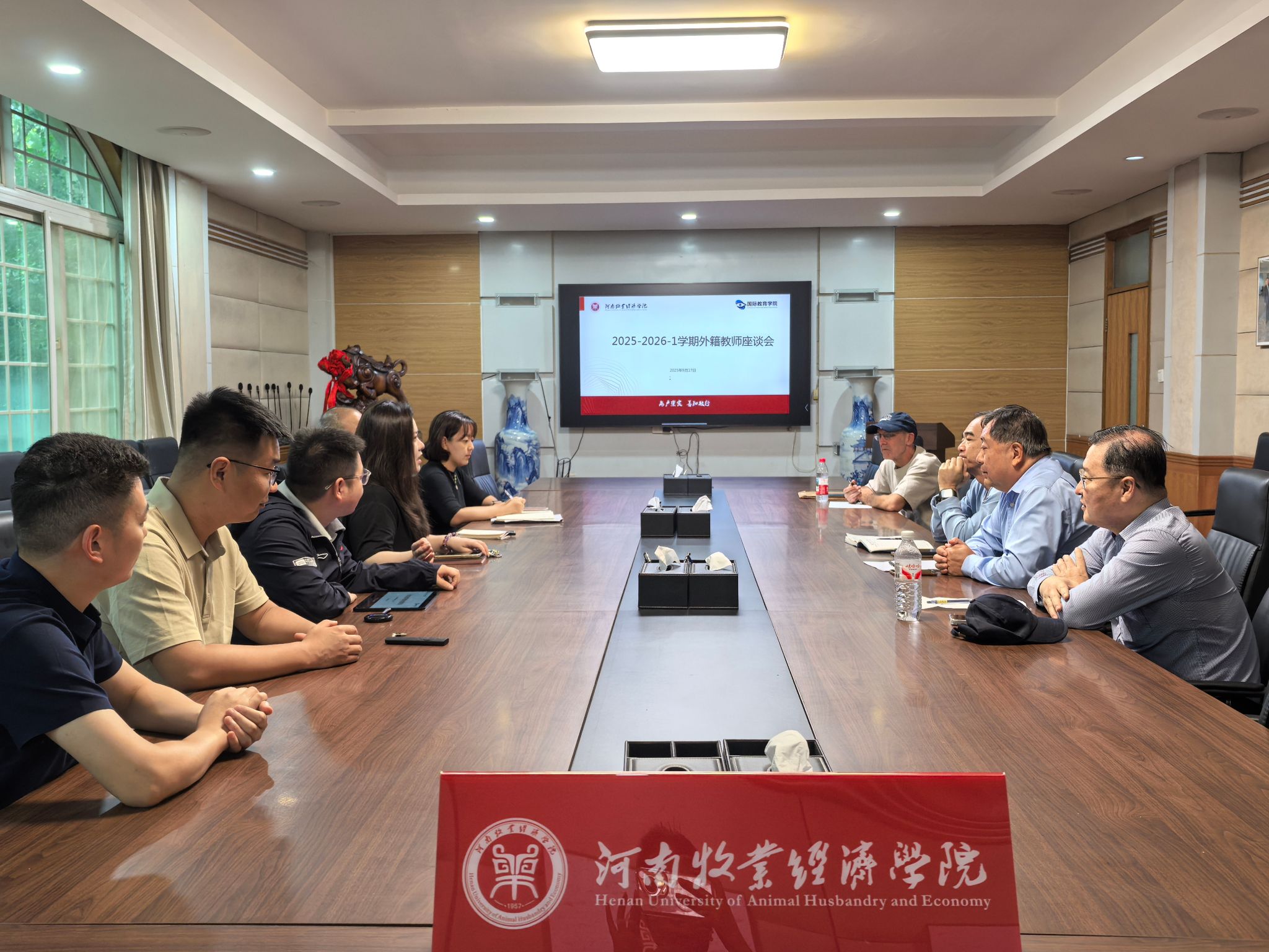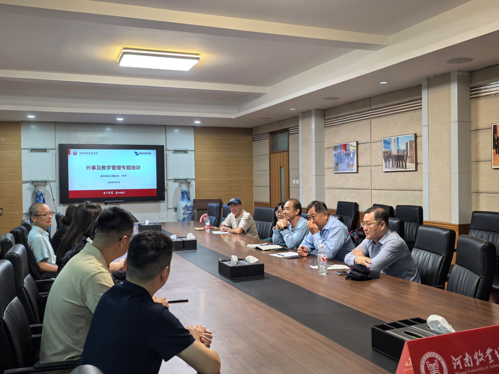 9月17日上午,国际交流与合作处、tyc522cc太阳成集团在英才校区教学办公楼113会议室联合举办外籍教师座谈会暨外事与教学管理专题培训。国际交流与合作处、tyc522cc太阳成集团相关负责人,中澳物流管理专业项目及中爱专科教育项目全体外籍教师参会。会议由tyc522cc太阳成集团副院长王胜男主持。